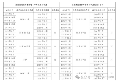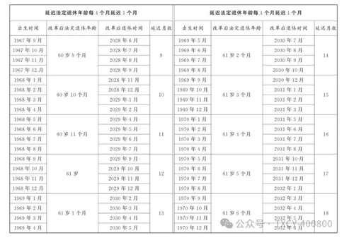 第一條?從2025年1月1日起,男職工和原法定退休年齡為五十五周歲的女職工,法定退休年齡每四個月延遲一個月,分別逐步延遲至六十三周歲和五十八周歲;原法定退休年齡為五十周歲的女職工,法定退休年齡每二個月延遲一個月,逐步延遲至五十五周歲。國家另有規定的,從其規定。